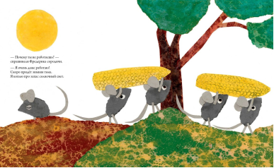 - Лео Лионни. Его работа «Фредерик», опубликованная в 1967г., наследуют принцип коллажной техники, который делает его работу динамичной, яркой и запоминающейся. Однако Лео Лионни внедряет и собственные новаторские приемы, связанные с коллажной техникой. Так, для того чтобы герои его книги (мыши) были пушистыми, он рвет бумагу руками, а не вырезает ровный контур ножницами (рисунок 9).