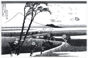 Наслаждаться искусством для японцев — это вслушиваться в несказанное, любоваться невидимым. Таковы гравюры японского художника Хокусая.