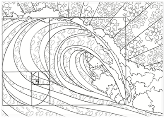 Предметы, изображённые на гравюрах, имеют форму спирали Фибоначчи: дерево, волна, гора Фудзи. В искусстве японцев большую роль играет символическое значение чисел. Единица и нечётные числа обозначали Небо и мужское начало мира. Единица является божественным числом.