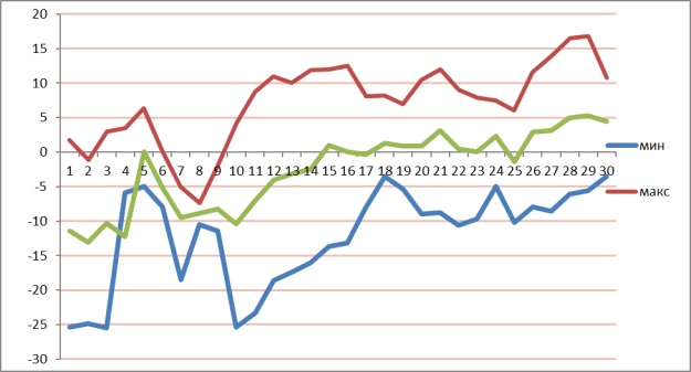 Рис.5. График температуры воздуха (Зависимость оттайки от температуры воздуха).