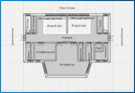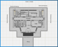 Далее начата работа над макетом. Создан план территории (рисунок 1), эскиз здания (рисунок 2), планы 1 и 2 этажей (рисунок 3, рисунок 4).