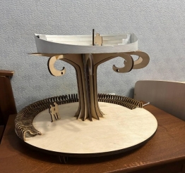 Помимо работы с оборудованием, в процессе создания макета я также занимался ручной деревообработкой: шкурил, склеивал и окрашивал детали макета, что требовало внимательности и аккуратности. Также выполнен монтаж светодиодной ленты внутри корпуса основания атриума.
