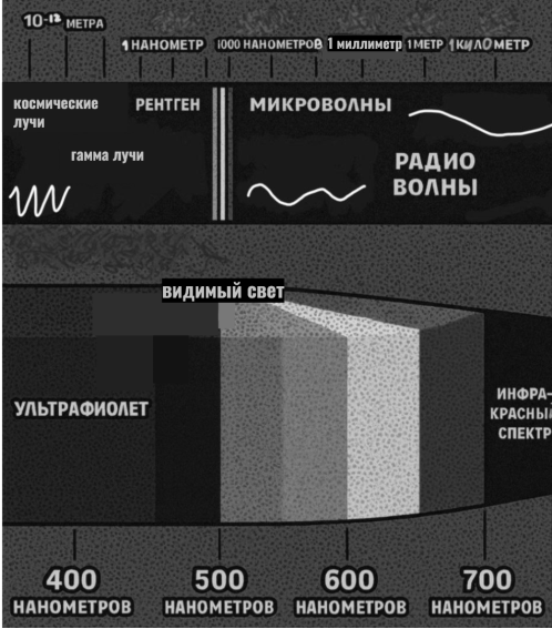 Существуют и волны, длины которых выходят за пределы видимого спектра: