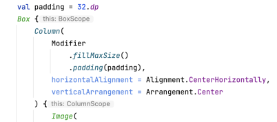 – и verticalArrangement: Arrangement.Center.