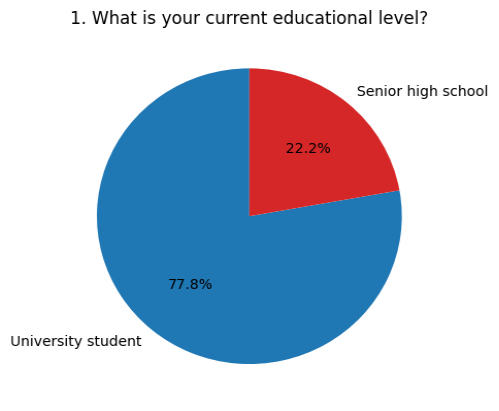 Most respondents were university students (77.8 %, 21 participants), whereas high school seniors represented 22.2 % of the sample (6 participants).