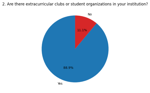 Most respondents (88.9 %) reported that extracurricular clubs or student organizations are present at their institution.