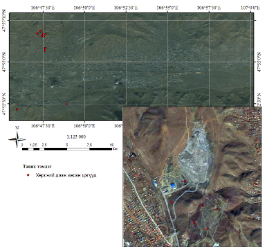 Для исследования были выбраны площадь свалки Нарангийн Энгэр и захороненная свалка Улаанчулуут. Также для сравнительного анализа выбраны площади некоторых юрточных кварталов.