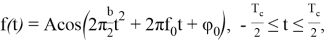 При рассмотрении цифрового ЛЧМ-сигнала Т с — длительность символа модуляции. Выражение для отсчета цифрового сигнала имеет вид (начальную фазу примем равную 0, частоту дискретизации и амплитуду А — равными 1, обозначим