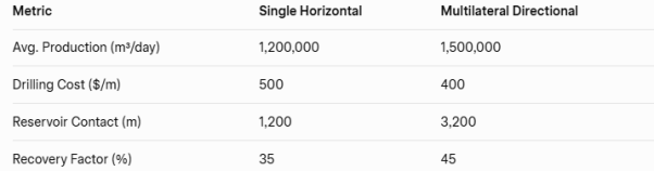 - Additional Branches: Up to three branches were created, each 800–1,000m long, using retrievable tools to re-access the main bore. Completions involved swellable packers for zonal isolation. By 2025, over 16 wells incorporated multilateral designs, with drilling rates averaging 200m/day despite Arctic winters.