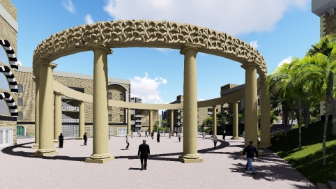 В городе Дамаск градостроительная ситуация имеет хаотичный план территории, что дает возможность расставить здания комплекса разными расстояниями, отчего возникает возможность увеличить площадь сквера.