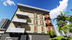 Комплекс имеет общий уровень, дополнен выступами «Аблак» и лестничными клетками. На фасадах отражаются три цвета: черно- белый «Аблак», коричневый «Машрабия» и облицовочный известняк светло- коричневого цвета, также же серый цвет перегородок на кровле, и белая перегородка с узорным орнаментом на балконах. (Рис. 7)