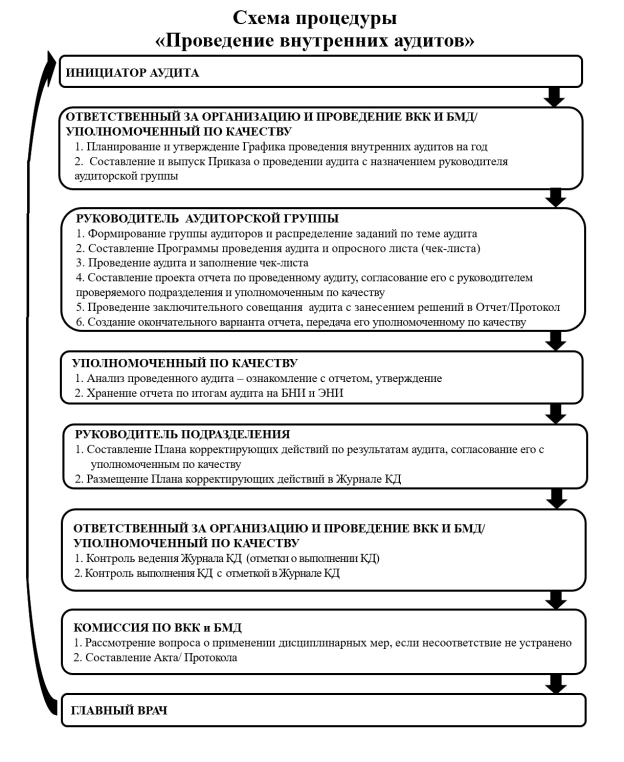 Проведение внутренних аудитов включает в себя этапы и ведение соответствующей каждому этапу документации (см. ниже Схема процедуры «Проведение внутренних аудитов») [2]: