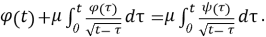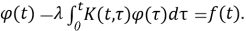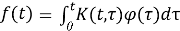 В этом случае неизвестная функция входит и вне интеграла, и под знаком интеграла. Для таких уравнений на каждом конечном промежутке времени существует единственное решение, поэтому нетривиальная однородная часть не возникает.