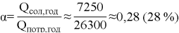 В традиционной схеме отопления (газовый или электрический котел) годовая потребность Q потр,год полностью покрывалась бы за счет топлива. Для примера возьмем природный газ: 1 м³ газа дает ≈10 кВт⋅ч тепла (номинальная теплотворная способность ~9000–10000 ккал). Тогда без использования солнечной энергии потребовалось бы около 26300/10 ≈ 2630 м³ газа в год. С учетом гелиосистемы остается покрывать 72 % нагрузки: (26300–7250)/10 ≈ 1903 м³ газа. Таким образом, годовая экономия газа ~727 м³, что значительно снижает расходы на топливо и выбросы CO₂.