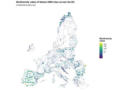 Fig. 5. Map 3. Biodiversity value of Natura 2000 sites across the EU