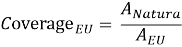 Three main spatial metrics were calculated. Overall Natura 2000 coverage across the EU was defined as: