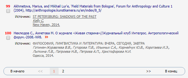Наконец, операции включения/исключения случаев цитирования выполняются для каждой страницы списка независимо. Благодаря этому автор всегда может проверить, к каким именно записям будет применяться соответствующее действие. Для навигации можно использовать соответствующий блок под перечнем работ.