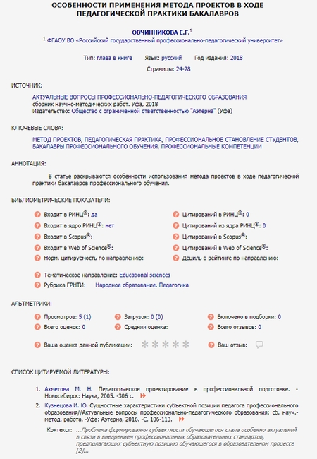 Аналогично можно посмотреть и данные о той публикации, в которой приведена ссылка на работу автора. Для этого нужно кликнуть непосредственно по описанию источника в списке публикаций.