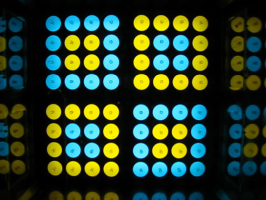 Школьники решили пойти дальше и выяснить, как насекомые определяют, где находится нектар: по цвету или расположению в пространстве? Для этого ребята заменили цвет кружков в центре на зеленый. В итоге шмели растерялись и выбирали лунки с жидкостью хаотично.