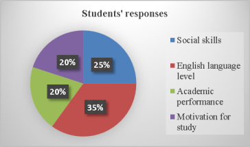 25 % of the interviewees say that they feel more confident when they get into a new environment and do not feel too embarrassed communicating with peers and teaching staff. It can be emphasized that students’ social skills become better.
