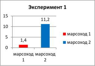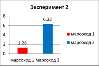 Эксперимент 2. Марсоходы проходят песчаную трассу за 1 минуту. Лучший результат у марсохода № 2